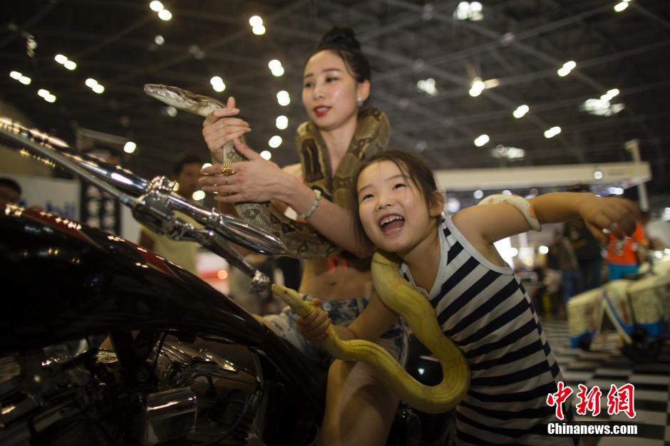 A girl playing with a patteraless acts as a guest car model (Photo from Chinanews)