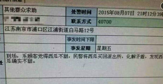 Recently, a consumer called the police because the watermelon he just brought didn't taste sweet in Nanjing, east China’s Jiangsu province. The police actually came to the site and helped settle the dispute.