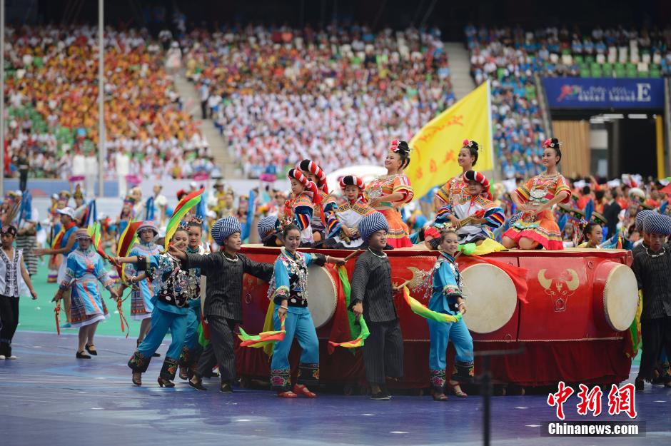 The Guizhou Delegation enters the arena. (Photo by China News Agency/ Liu Wenhua)