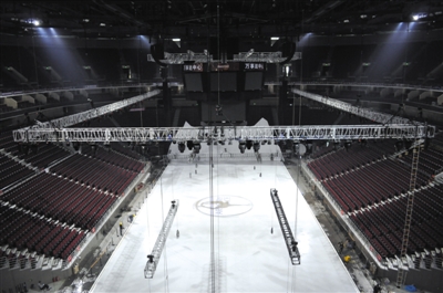 Beijing Wukesong Indoor Stadium will host the ice hockey competition of the 2022 Olympic Winter Games. According to the technical staff in the stadium, using the new technology, it will take only four hours to transform the basketball court into a skating rink, which uses 40 percent less energy compared with traditional ice technology.