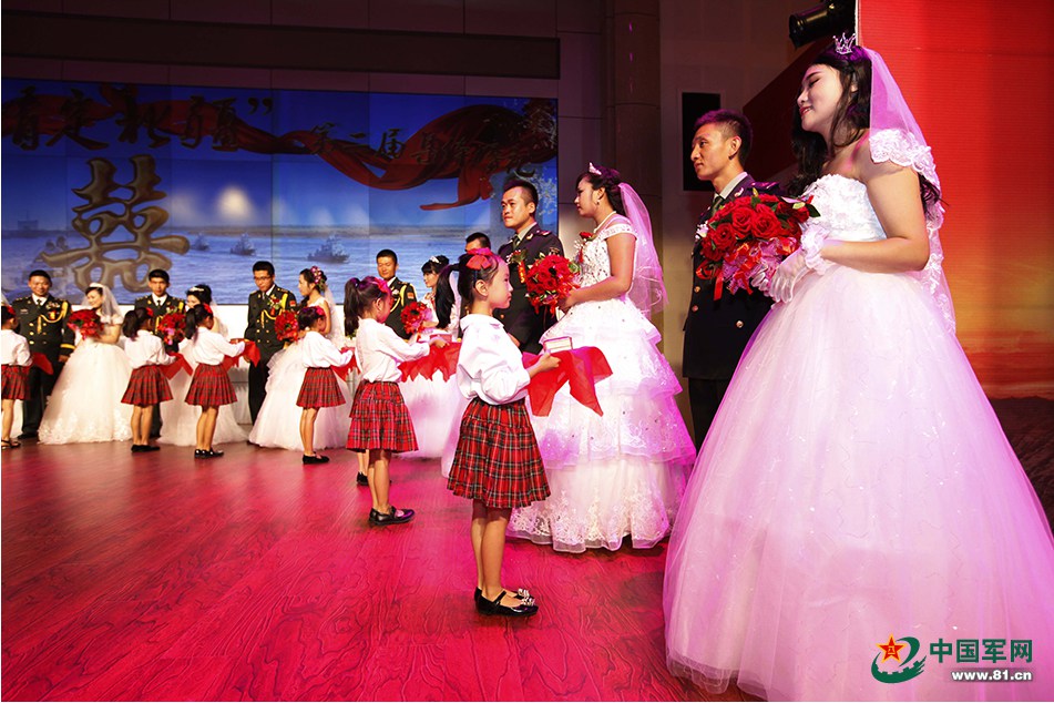 A special group wedding was held in Heihe, northeast China’s Heilongjiang province for 14 military soldiers on Aug. 1, 2015. Most of these soldiers spent their time on the frontier, in the woods, or on naval vessels, so they rarely have the time to keep their lovers company. The group wedding served as a platform for the soldiers' life partners to understand the importance of their jobs and cherish the hard-earned happiness.