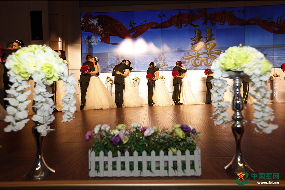 A special group wedding was held in Heihe, northeast China’s Heilongjiang province for 14 military soldiers on Aug. 1, 2015. Most of these soldiers spent their time on the frontier, in the woods, or on naval vessels, so they rarely have the time to keep their lovers company. The group wedding served as a platform for the soldiers' life partners to understand the importance of their jobs and cherish the hard-earned happiness.