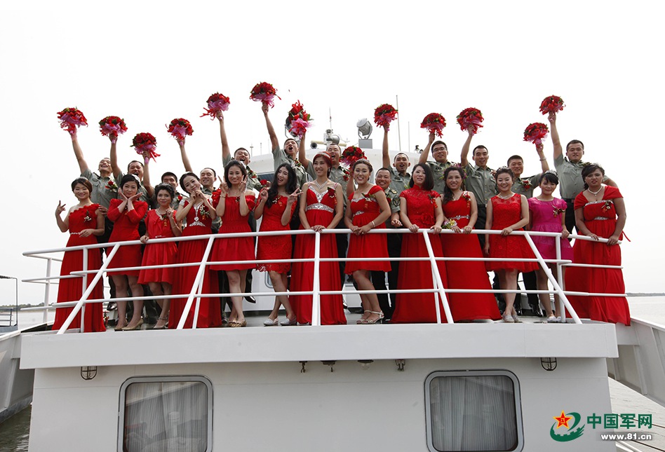A special group wedding was held in Heihe, northeast China’s Heilongjiang province for 14 military soldiers on Aug. 1, 2015. Most of these soldiers spent their time on the frontier, in the woods, or on naval vessels, so they rarely have the time to keep their lovers company. The group wedding served as a platform for the soldiers' life partners to understand the importance of their jobs and cherish the hard-earned happiness.