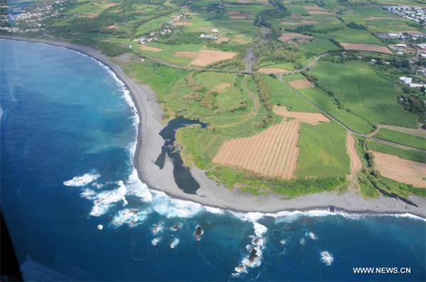 Aerial Photo taken on Aug. 9, 2015 shows the eastern coast of France's overseas island La Reunion in the Indian Ocean. France on Aug. 7 announced that hunts for more MH370debris will continue for at least a week off la Reunion after a wing section was spotted near the island. (Xinhua/Zhang Chuanshi)