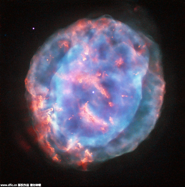 This colorful bubble is a planetary nebula called NGC 6818, also known as the Little Gem Nebula. It was discovered by the noted British astronomer Sir William Herschel in 1787. (Phjoto/ dfic.cn)