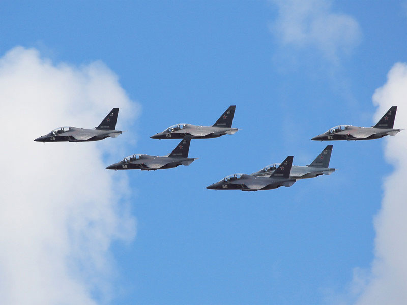 Photo shows the Russian aerobatics team performing in the Aviadarts in Russian 2015 Int'l Army Games on Aug. 10, 2015. (Photo/provided to China.org)