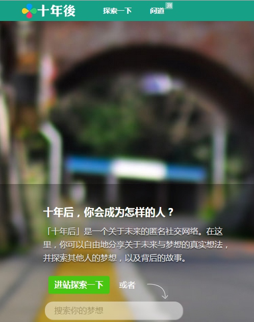 Different from other domestic SNS that copy ideas from foreign SNS, Da Xing wants to do something original. 10years.me works like the Chinese Weibo, but people are all anonymous on the site, and all the posts they send are things about dreams. It can be as easy as “running 5 kilometers everyday,” or as ambitious as “having a successful enterprise.” People can show their everyday progress and comment on others’ as well.