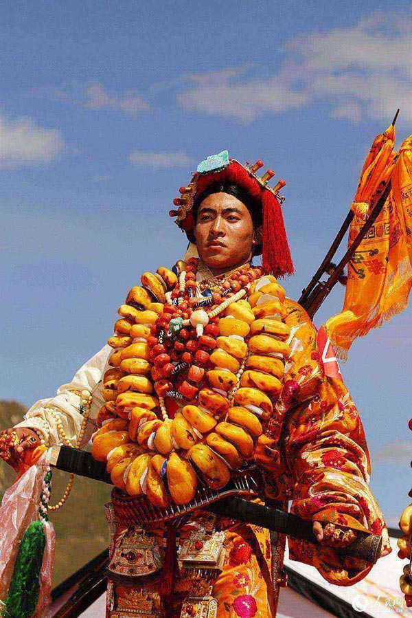 A traditional Tibetan costumes show is held in Zadoi County in northwest China’s Qinghai province on Aug. 7, 2015. Over 140 young men and women wearing Tibetan costumes and precious jewelries participated in the costume performance. (Photo/people.cn)