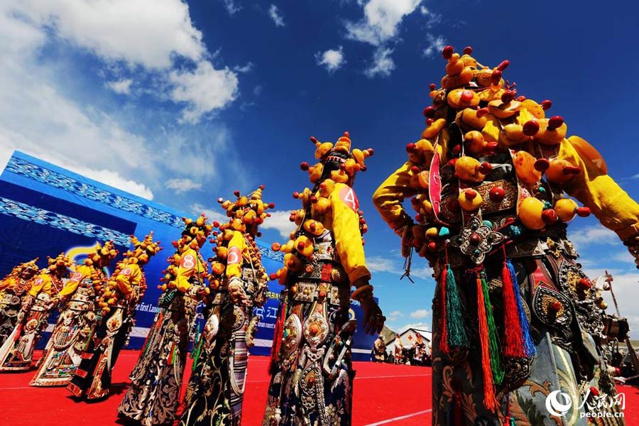 A traditional Tibetan costumes show is held in Zadoi County in northwest China’s Qinghai province on Aug. 7, 2015. Over 140 young men and women wearing Tibetan costumes and precious jewelries participated in the costume performance. (Photo/people.cn)