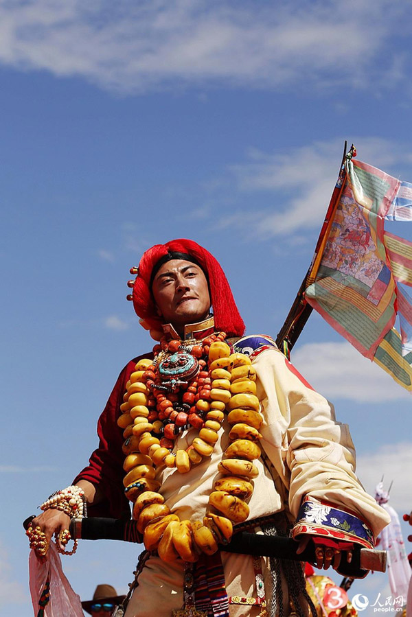 A traditional Tibetan costumes show is held in Zadoi County in northwest China’s Qinghai province on Aug. 7, 2015. Over 140 young men and women wearing Tibetan costumes and precious jewelries participated in the costume performance. (Photo/people.cn)