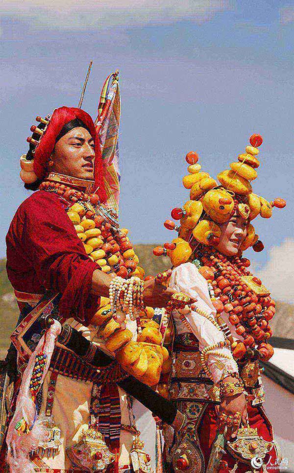 A traditional Tibetan costumes show is held in Zadoi County in northwest China’s Qinghai province on Aug. 7, 2015. Over 140 young men and women wearing Tibetan costumes and precious jewelries participated in the costume performance. (Photo/people.cn)
