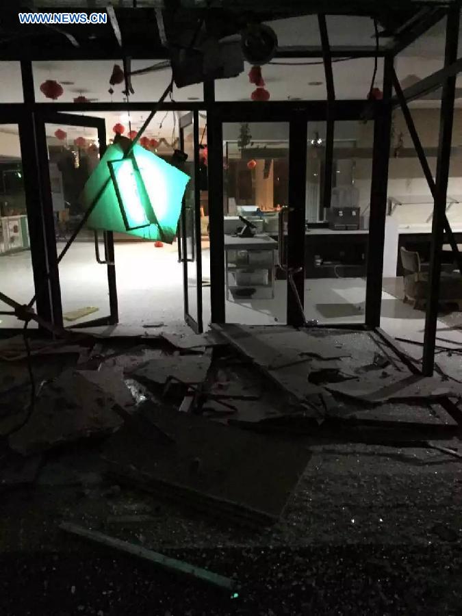 Photo taken on Aug. 13, 2015 shows a damaged restaurant after an explosion in the Binhai New Area in north China's Tianjin Municipality. The death toll from a Tianjin warehouse blast Wednesday night has climbed to 17, according to rescuers. Another 32 people were critically injured and 283 people are under observation in hospital. (Xinhua/Yue Yuewei)