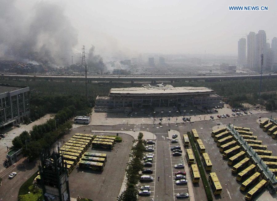Photo taken on Aug. 13, 2015 shows an aerial view of the explosion site in Binhai New Area of Tianjin, north China. The death toll has climbed to 44 from two massive blasts that ripped through a warehouse in north China's port city of Tianjin as of Thursday noon, according to rescue headquarters. Twelve firefighters were among the dead. (Xinhua/Zhang Chenlin)