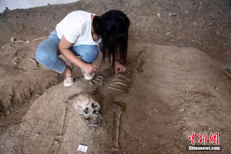 Pan Sijie, 25, works at the Workers' Museum in Jilin. One of her daily jobs is organizing the remains of workers who died during the Japanese War of Aggression against China. During the war, Japan forced over 110,000 Chinese labors to build a hydropower station in Fengman, and dozens of thousands of workers died during that period. The museum in Jilin has 35 complete remains of the workers, countless limbs and bones, 38 cultural relics, and over 400 historical photos. (Chinanews/Cang Yan)