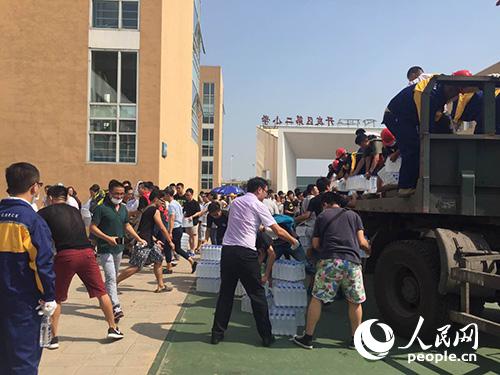 Two massive explosions ripped through a container terminal in northern China’s Tianjin municipality Wednesday night. A local primary school has been transformed into a shelter for the victims. Several volunteers told People’s Daily Online that community assistance has been in place soon after the explosions. Volunteer organizations and volunteers brought food and water to the shelter. Some even drove their cars to the explosion site to help evacuation. (People's Daily Online/Pan Xuhai)