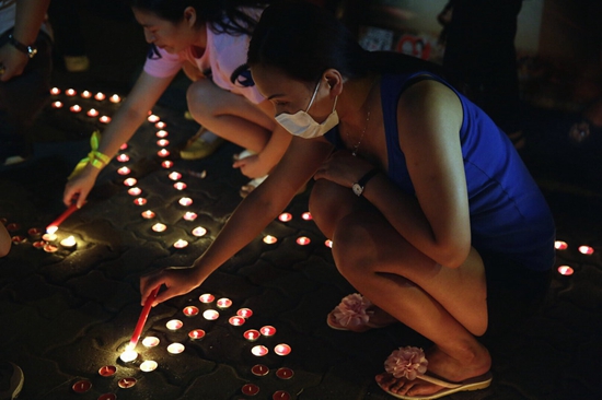 People light up candles to make condolence to the dead during the explosion. (Photo/Xinhua)