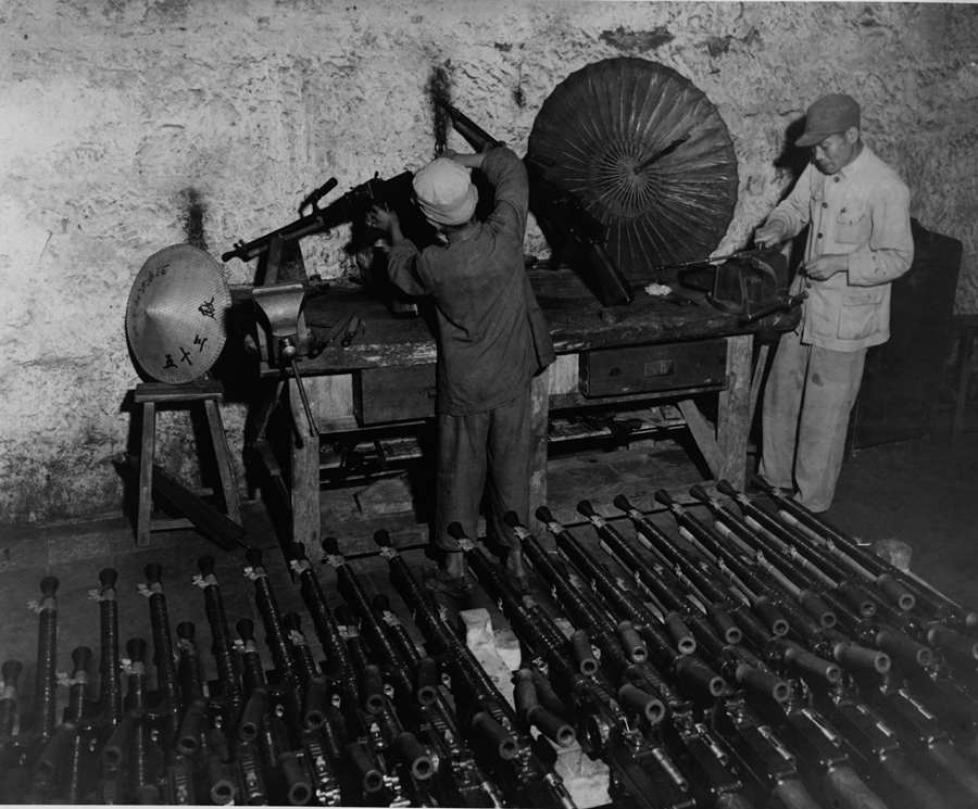 Two workers check guns which would be transported to the frontline. (Photo/Chinadaily.com.cn)