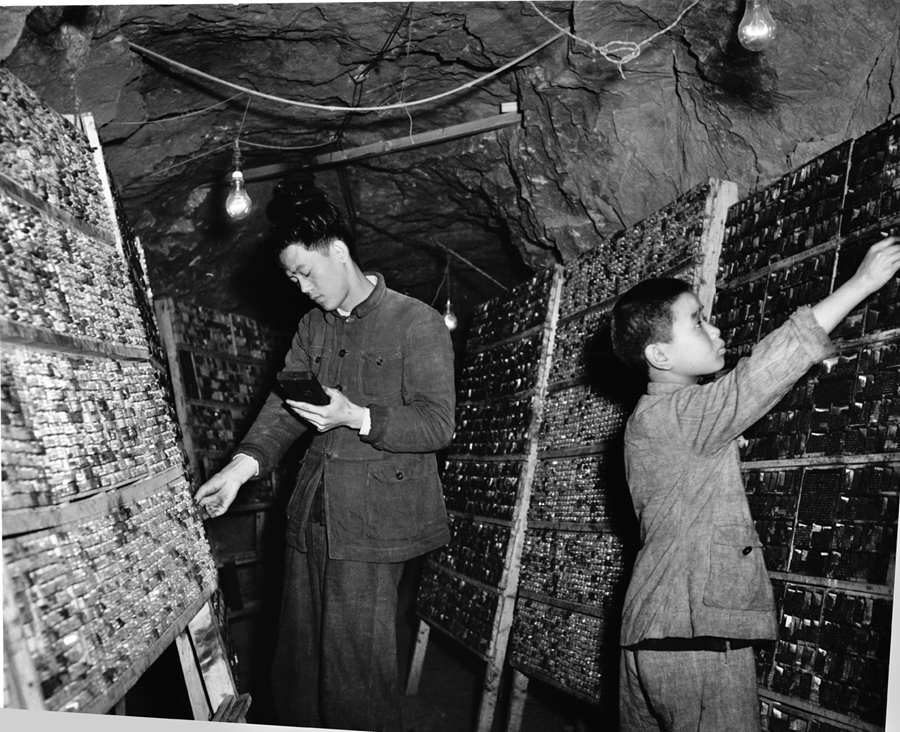 Two workers in an air-raid shelter. (Photo/Chinadaily.com.cn)