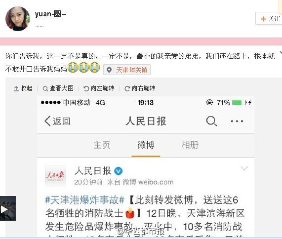 | His sister says that she doesn’t know how to tell her mother of Yuan Hai’s death. (Photo from Weibo) |