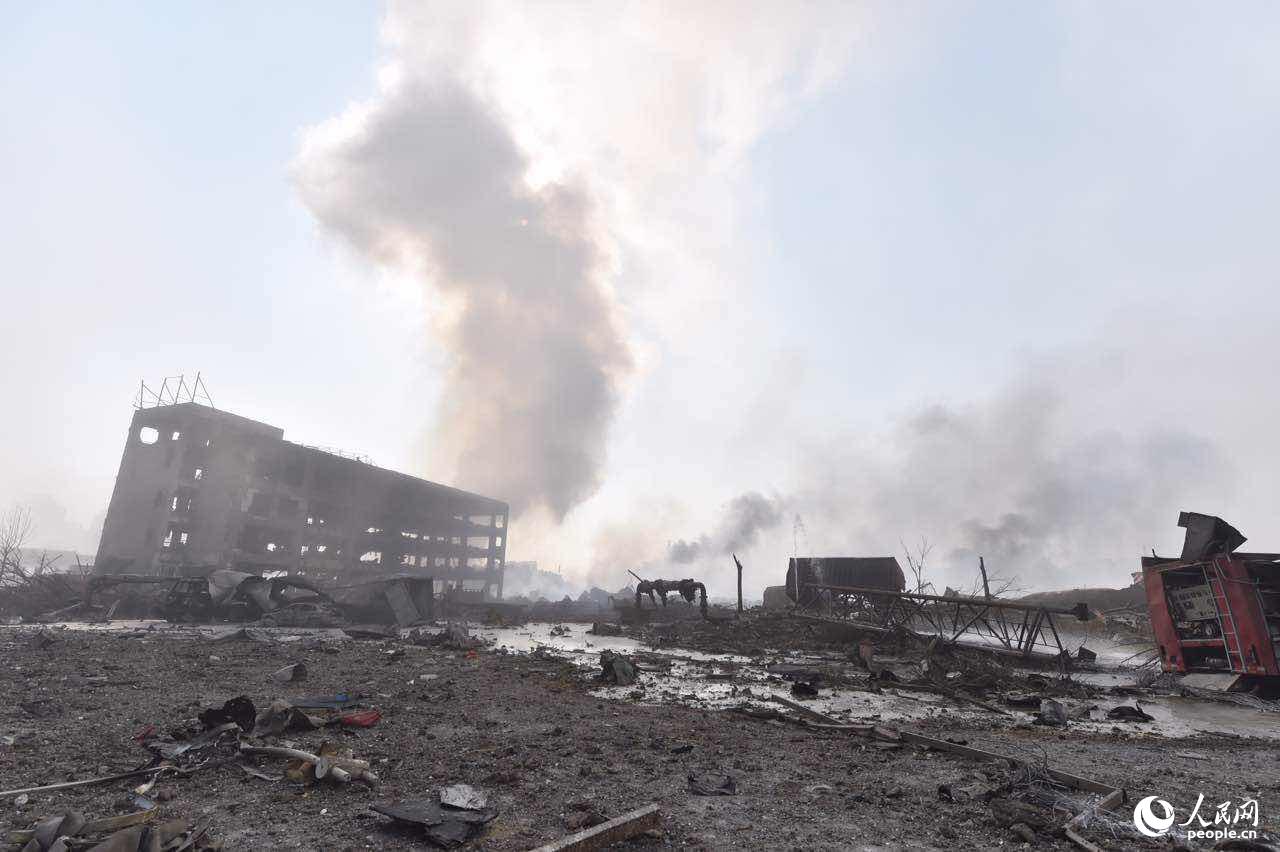 Thick smoke rises from the blast site. (Photo/People’s Daily Online)