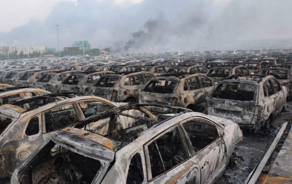 Almost ten thousand new cars were ruined following powerful blasts in the northern Chinese port city of Tianjin. (Photo/Xinhua)