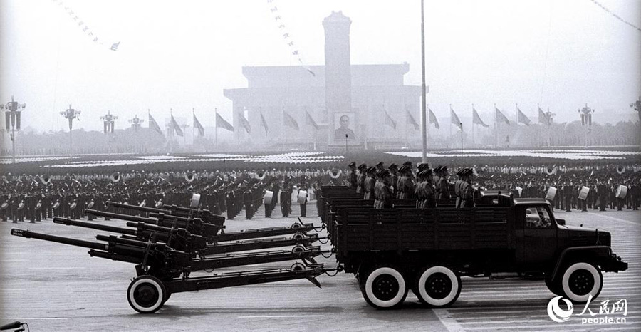 Artilleries displayed in the 1984 parade. (Qiao Tianfu/People.cn)