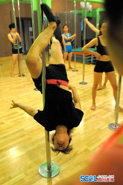 Dai Dali, 70, practices pole dancing in Chengdu city, capital of southwest China's Sichuan province. (Photo/ scol.com.cn)