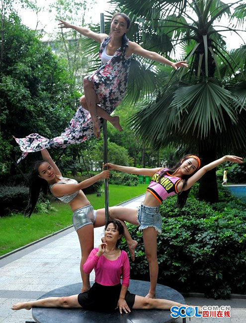 Dai Dali, 70, practices pole dancing in Chengdu city, capital of southwest China's Sichuan province. (Photo/ scol.com.cn)