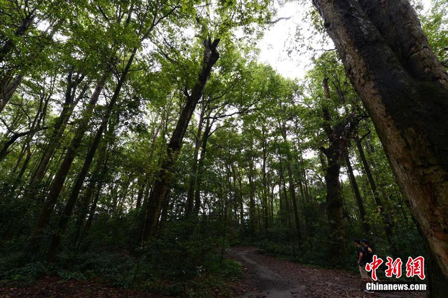 On Aug. 12, people visit the nanmu forest in Shuinan village, Fujian. (Photo by Wang Dongming / Chinanews)