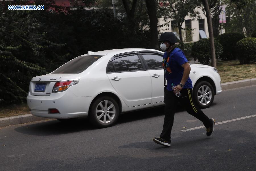 Residents rush to leave after getting an evacuation order near the core area of explosion site in Tianjin, north China, Aug. 15, 2015. All people within 3-km radius are required to evacuate from Tianjin blasts site. (Xinhua/Shen Bohan)