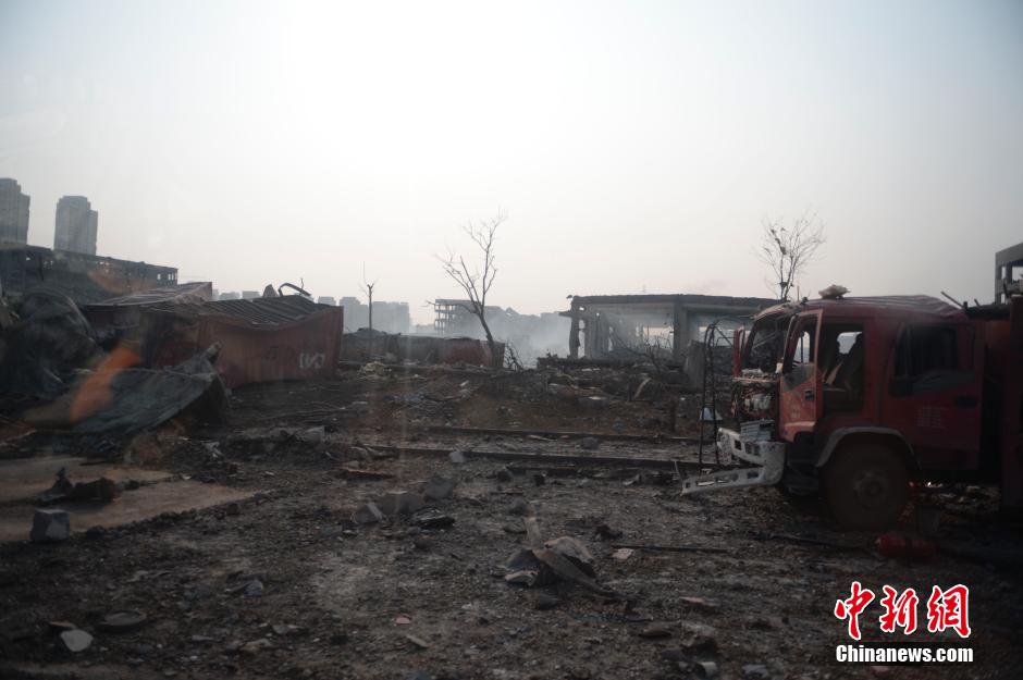 The photo taken on Aug. 16, 2015 shows the charred remains of police cars and fire engines at the center of the explosion site in Tianjin, north China. A total of 112 bodies have been found, and 95 people remained missing, including 85 firefighters, after massive warehouse explosions rocked north China's Tianjin city Wednesday night, officials said at a press conference Sunday morning.