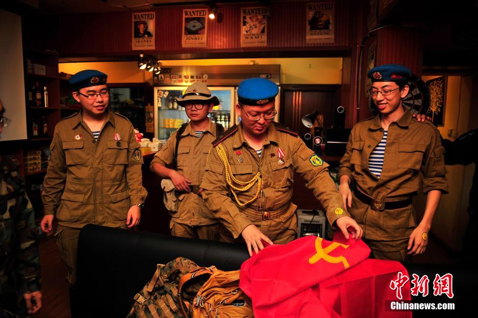 On Aug.15, army fans in Kunming gather together with their collection of army items to celebrate the 70th anniversary of the victory of Chinese People’s War against Japanese Aggression.