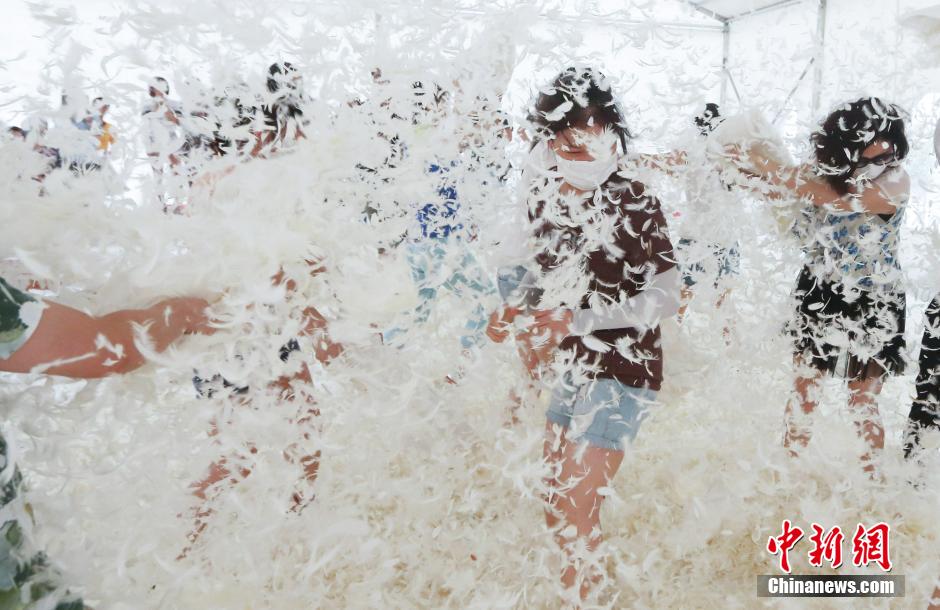 A pillow fight in Nanjing attracts many young people to participate in on Aug. 15, 2015. People chased each other and hit each other with pillows, releasing their pressure and making friends. (Chinanews/Yang Bo)
