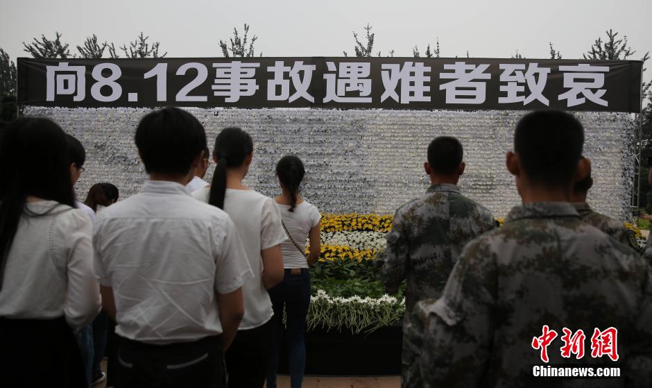 Seven memorial places are set up to mourn the victims of the catastrophic blasts accident in Tianjin on Aug. 18, 2015. Soldiers of the PLA and the Armed Police Force, policemen, firefighters, volunteer representatives and local residents attended the mourning activities in different places.