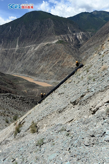 Waterway is being built on the cliffs along the Jinsha River of southwest China's Sichuan province. (Photo/ scol.com.cn)