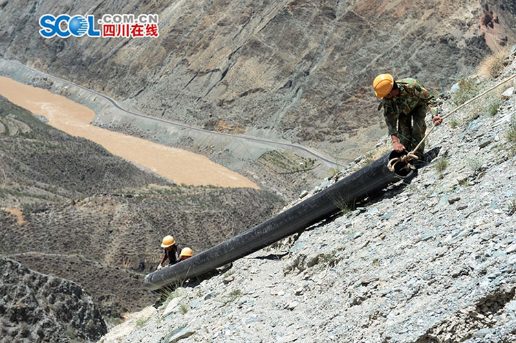 Waterway is being built on the cliffs along the Jinsha River of southwest China's Sichuan province. (Photo/ scol.com.cn)