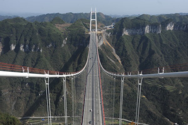 The bridge that crosses the Aizhai Grand Canyon is the third highest mainspan in the world, and the first in Asia.