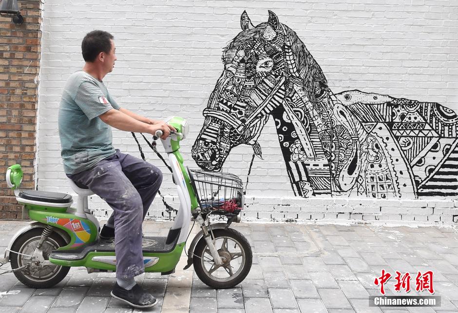 | Graffiti enthusiasts paint on a 200-meter wall in Taiyuan, north China’s Shanxi province on Aug. 18, 2015. (CNS/Wu Junjie) |