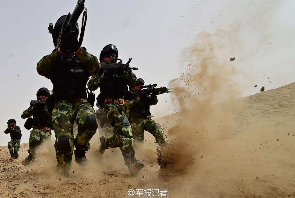 Soldiers of Xinjiang Armed Police Corps conduct training on sandy days (5)