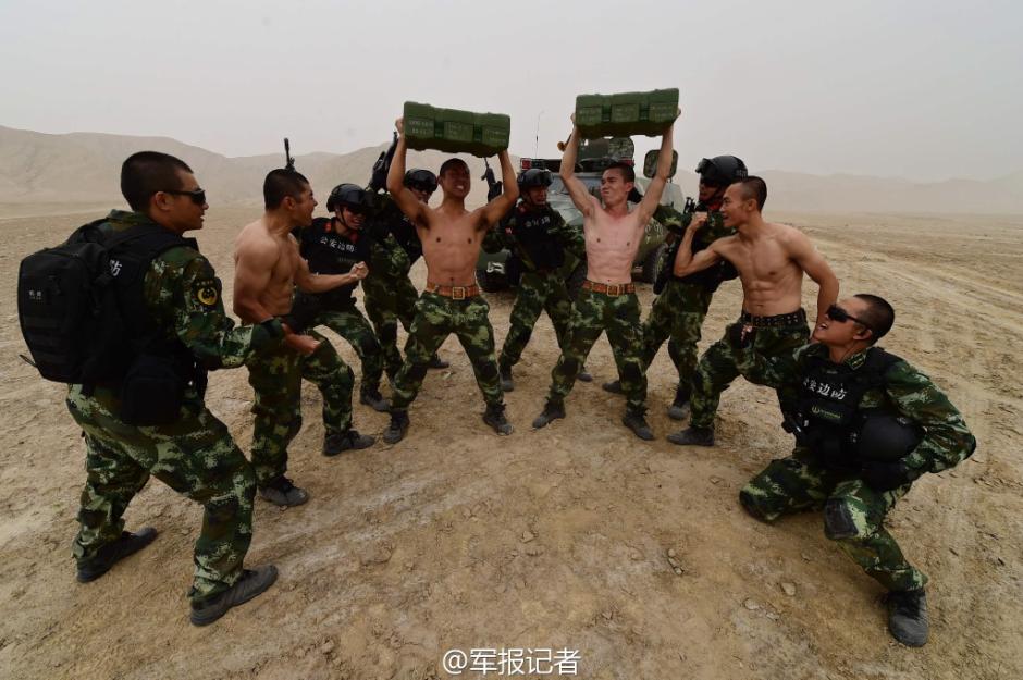 A detachment of Xinjiang Armed Police Corps has conducted training in the gobi desert of Kashgar, Xinjiang Autonomous Region in recent days. This training aims at tempering the soldiers' tenacious style and the will to fight.