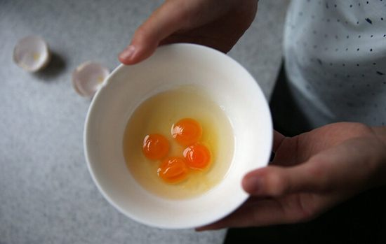 Despite surprising odds of 11 billion to one, a Chinese woman surnamed Yan living in Xi’an, Shaanxi province cracked open an egg to find four yolks inside when she cooked dinner for the family, reported hsw.cn.