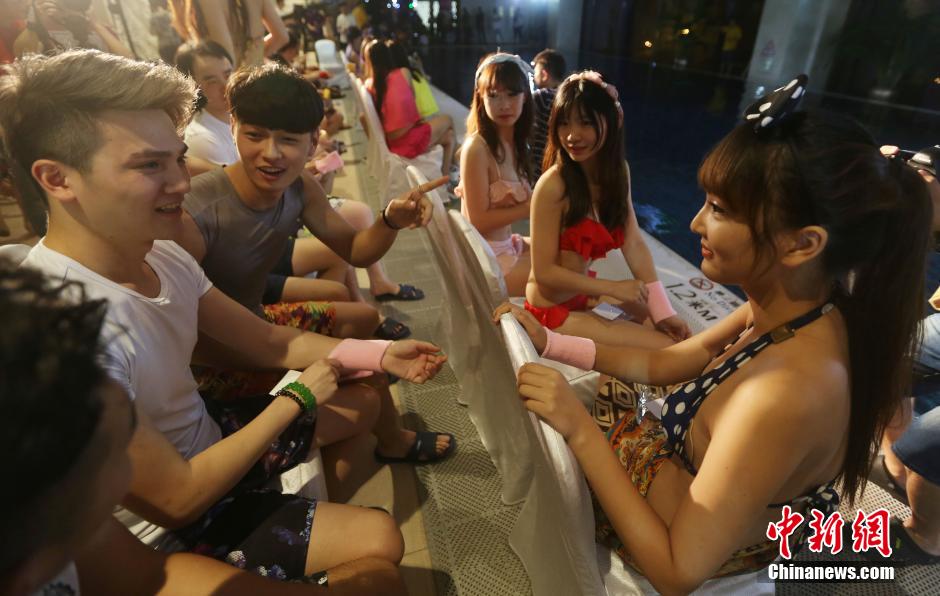 A matchmaking event is held at a swimming pool in a hotel in Nanjing, east China's Jiangsu province on Aug, 19, one day before the Qixi Festival. (Photo/CNS)