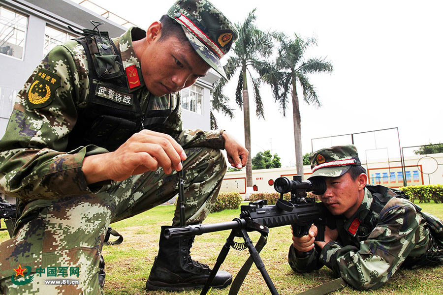 Nanning Armed Police Detachment begins to conduct a one-week special training for snipers on Aug. 15, 2015, so as to improve their sniping skills and psychological qualities. (Photo/www.81.cn)