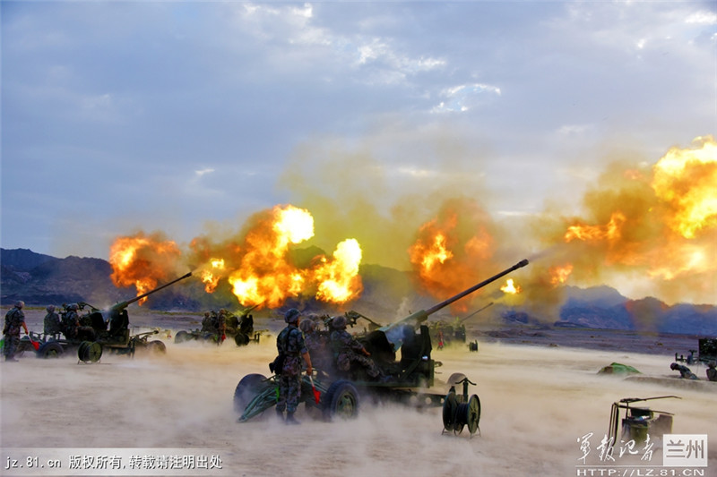 A regiment of PLA Lanzhou Military Region conducts live-fire drill near the foot of Mount Tianshan. Thousands of shells were fired during the 30-hour drill. (81.cn/Dong Hao)