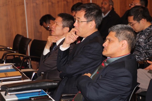 Chinese commercial counselor in SA Mr.Rong Yansong(L1), Vice-Prsident of CAD Fund Mr. Yang Aiwu(L2), Head of Investment Promotion of the DTI Mr. Yunus Hoosen, attend the Sino-SA Industrial Capacity Cooperation Forum in Cape Town, South Africa on August 24th, 2015. (Picture: People’s Daily Online / Zhang Jiexian)
