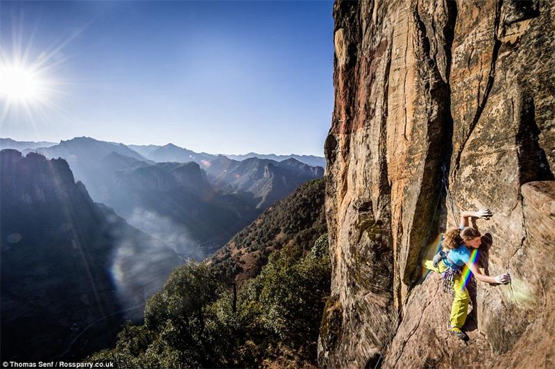 Swiss climber Rahel Schelb, 33, scaled the the epic death-defying sandstone walls of the Li Ming region, in Yunnan Province, China.
