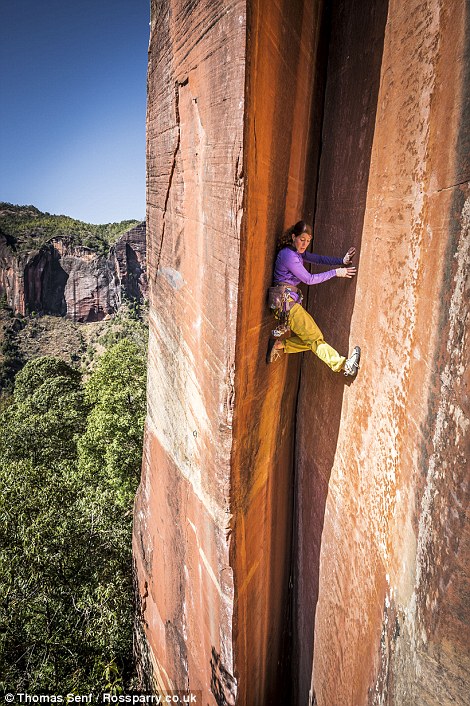 Swiss climber Rahel Schelb, 33, scaled the the death-defying sandstone walls of the Li Ming region, in Yunnan Province, China