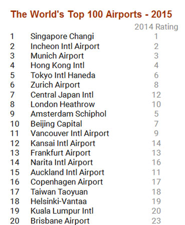 The World Airport Awards began in 1999, and has become a global benchmark of airport excellence. The 2015 World Airport Awards are based on 13 million survey questionnaires completed by airline customers around the world. The survey covered 550 airports worldwide, and evaluated travelers’ experiences from check-in, arrivals, transfers, shopping, security and immigration through to departure at the gate.
