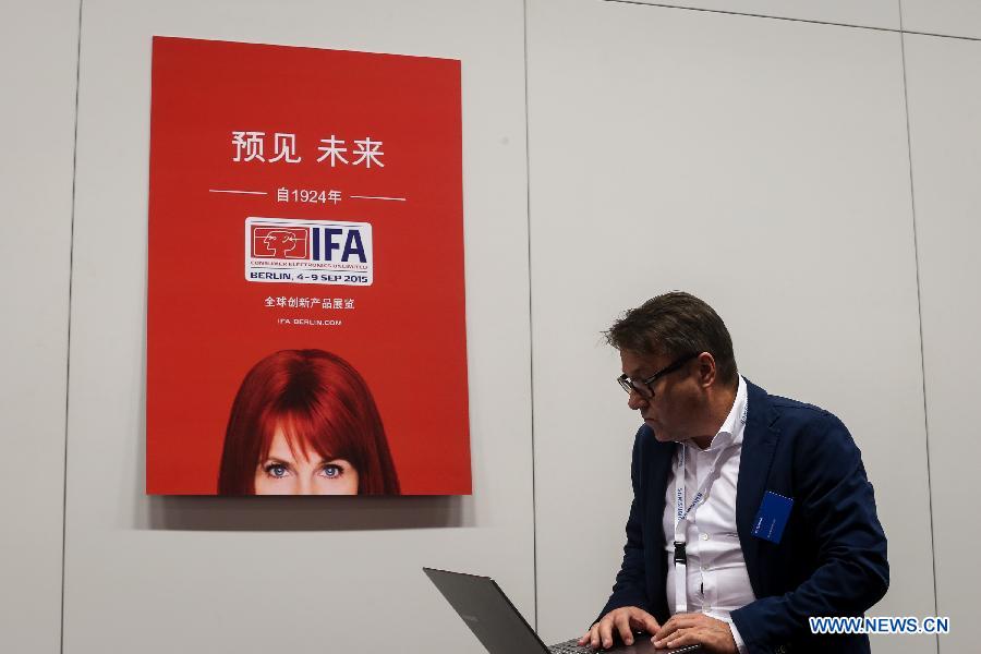 A visitor works on his laptop at the 55th IFA consumer electronics fair in Berlin, Germany, on Sept. 4, 2015. As the 55th IFA consumer electronics fair, Europe's largest consumer electronics and home appliances fair kicked off on Friday in Berlin, China Brand Show also held its first opening ceremony at IFA. (Xinhua/Zhang Fan)