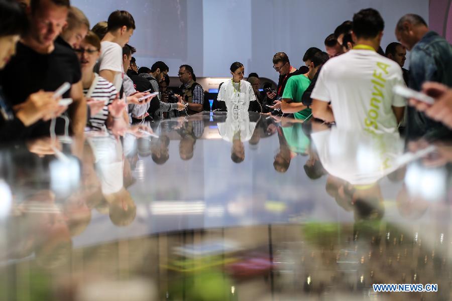 Visitors view Sony's smartphones at Sony's stand of the 55th IFA consumer electronics fair in Berlin, Germany, on Sept. 4, 2015. As the 55th IFA consumer electronics fair, Europe's largest consumer electronics and home appliances fair kicked off on Friday in Berlin, China Brand Show also held its first opening ceremony at IFA. (Xinhua/Zhang Fan)